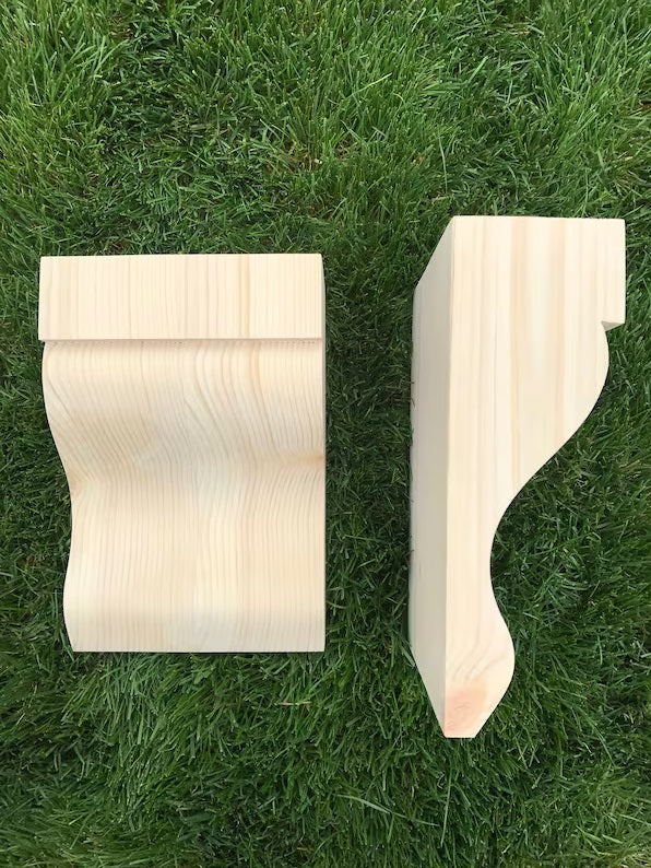 These corbels are made from high grade red wood and come in the natural form and are ready for you to either wax, paint,