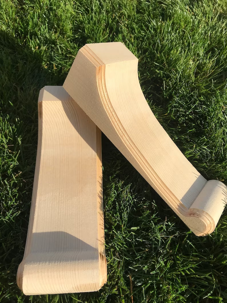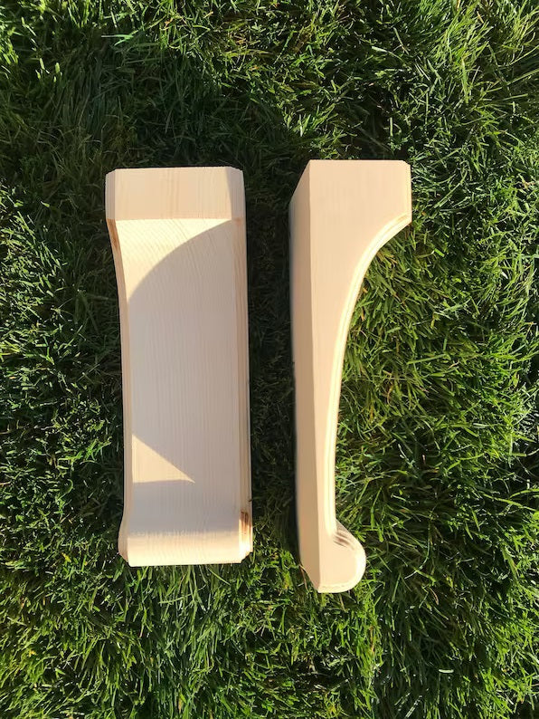 These corbels are made from high grade red wood and come in the natural form and are ready for you to either wax, paint,